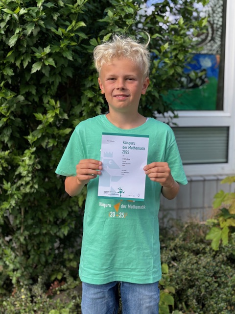 Eric Ostheim aus der Klasse 4b hat an unserer Schule beim Mathe-Känguru-Wettbewerb den 1. Platz gemacht und von insgesamt 881.228 Schülerinnen und Schülern den 14. Platz belegt!